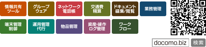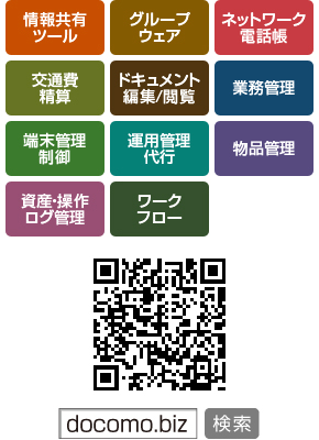 ビジネスプラスは「情報共有ツール」「業務管理ツール」「交通費精算ツール」など、ドコモが厳選したパートナー・サービスから、複数組み合わせておトクにご利用できるパッケージです。詳しくはドコモビジネスオンラインHPをご覧ください。