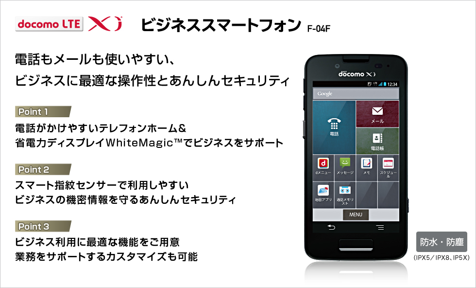 【電話もメールも使いやすい、ビジネスに最適な操作性とあんしんセキュリティ】 ビジネススマートフォン F-04F
