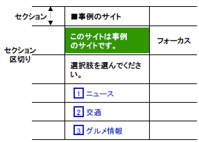 1度にフォーカスがあたる範囲を「セクション」といいます。- HTMLのタグにもとづき、セクションを判断します。