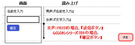 - らくらくホンシリーズ(注3)では、送信実行ボタンは、value属性の文字列を読み上げます。