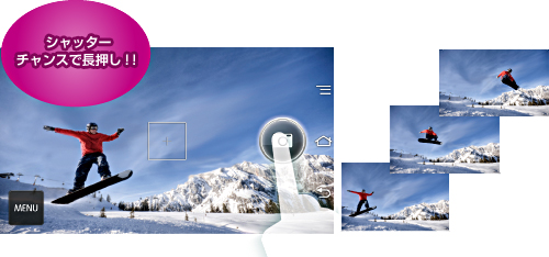 シャッターを押し続けるだけのカンタンな操作で、高速連写が可能。逃したくない一瞬を確実にとらえます。