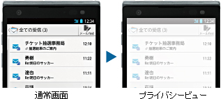 画面に模様を重ね表示内容を見えにくくして、他人の視線を気にせずメールやWebサイトなどをチェックできます。