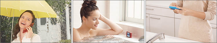 • キッチンでお料理中、濡れている手でケータイを操作したり、少々の水がはねあがっても大丈夫。