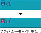 プライバシーモードとは、指定人物やグループに関する情報(電話帳や着信、送受信メールなど)をワンアクションで非表示にできる安心機能。シークレット属性設定者から新着があった場合は、あらかじめ設定してある電池アイコンに切り替わってお知らせします。