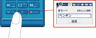 F906iで好評のサーチキーを継承しました。サーチキーをプッシュするだけで、さまざまな検索が行えます。検索ウィンドウに気になるキーワードを入力すれば、検索結果へダイレクトにアクセス可能。また、他機能が起動中でも検索ウィンドウを呼び出すことができるので、いつでもどこでも検索可能です。