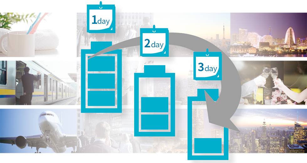 短時間で充電が可能。充電を忘れて急いでいるときなどに便利です。