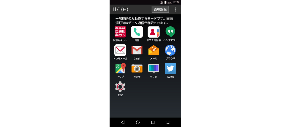 災害や遭難などの緊急時に、最低限必要なもの以外の機能をOFFにしたり省電力モードに切り替えたりして、電池の消耗を大幅に抑える「非常用節電モード」を搭載。災害など充電がなかなか行えない状況で、電池を極力長持ちさせます。