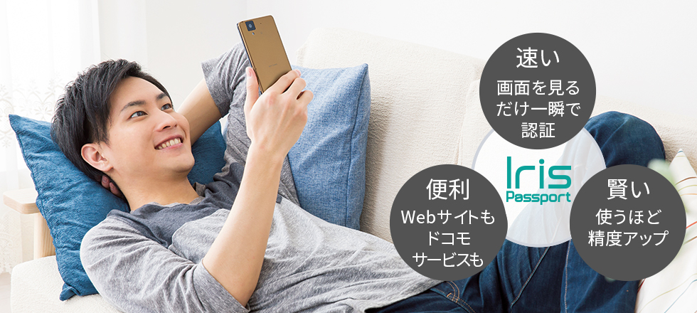 dアカウント・パスワードを入力することなく、虹彩認証を利用し、画面を見るだけでログインや決済を行えます。
