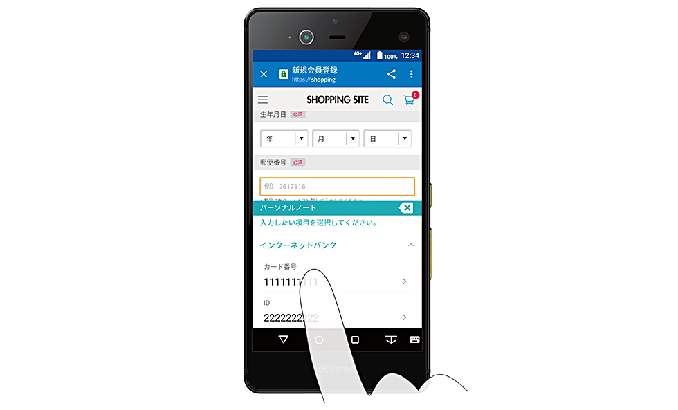 Webサイトへのログインやネットショッピングなどで必要な、IDやパスワード、カード番号や口座番号などの個人情報も画面を見るだけで、カンタンに呼び出せます。さらに、引用画面を下半分で表示する新しいUIで、今までよりも短いステップで入力可能。安心して快適に使うことができます。