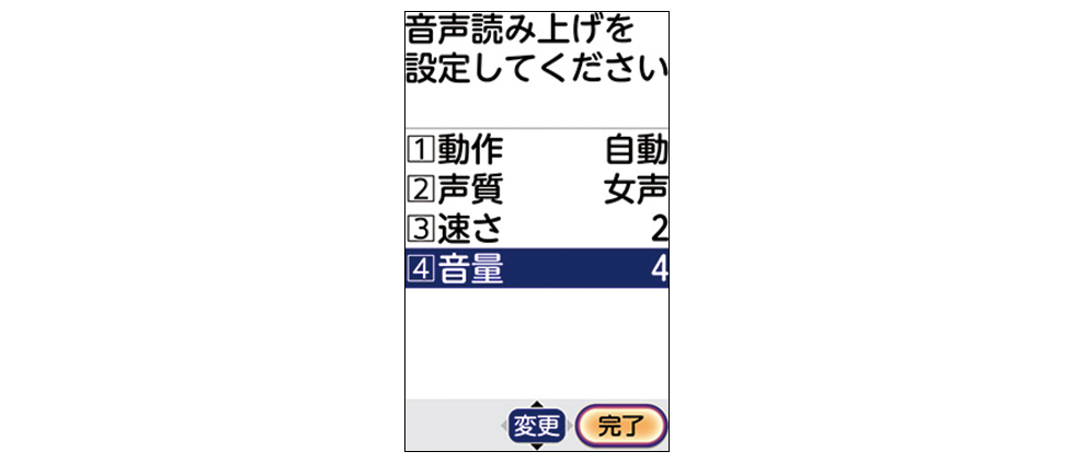 着信時の電話相手や、受信したメール内容、メニュー内容などを音声で読み上げるように設定できます。