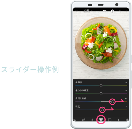 彩度調整は写真の中にあるあらゆる色味を調整する機能です。