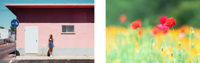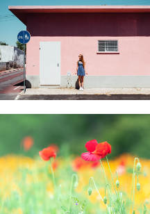 ・街で見かけたパステルカラーの壁面や公園の鮮やかな花をより印象的に!