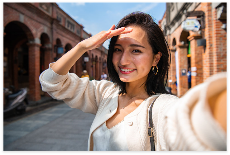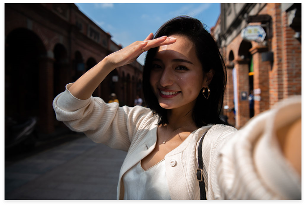 屋外の太陽など、強い光源がある場所での風景・自撮り