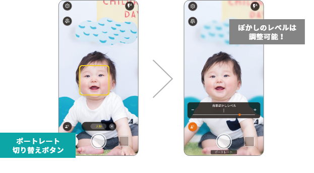被写体やシーンを認識し、いちばん最適なモードを自動でセレクトするAIカメラを搭載。また、被写体がよりくっきりと鮮明になる「ポートレート撮影」機能も付き、最適なバランスで最高の一枚が撮れます。