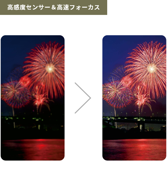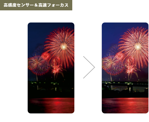 一眼レフにも採用される高速オートフォーカス技術により、暗い場所でも速くピントが合うので、精度の高い写真が撮れます。