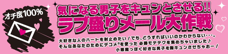 大好きな人のハートを射止めたい!でも、どうすればいいのかわからない…。そんなあなたのためにデコメ(R)を使った必勝モテテクを集めちゃいました