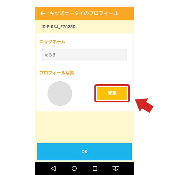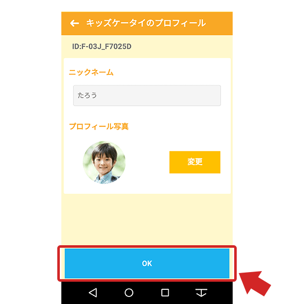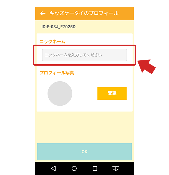 キッズケータイ F-03Jのニックネーム、写真を登録する