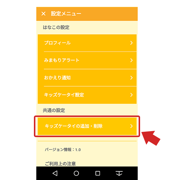 操作手順:キッズケータイの追加・削除