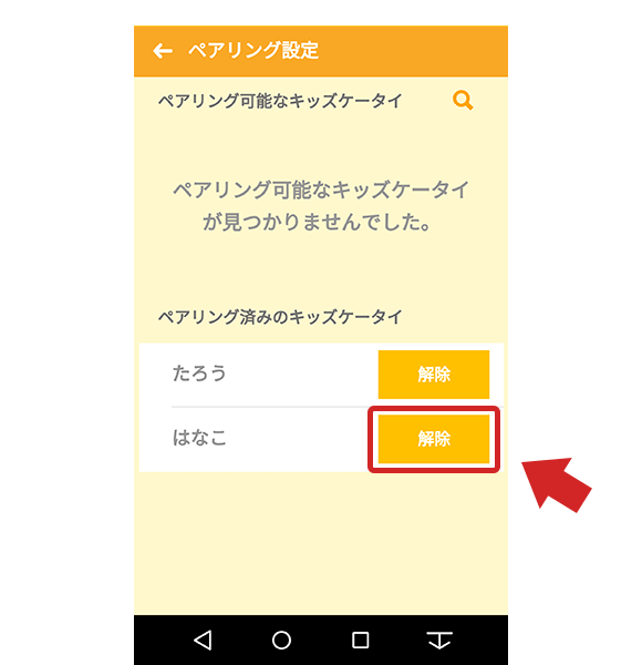 - 削除したいキッズケータイ F-03Jを選び、「解除」をタップします。