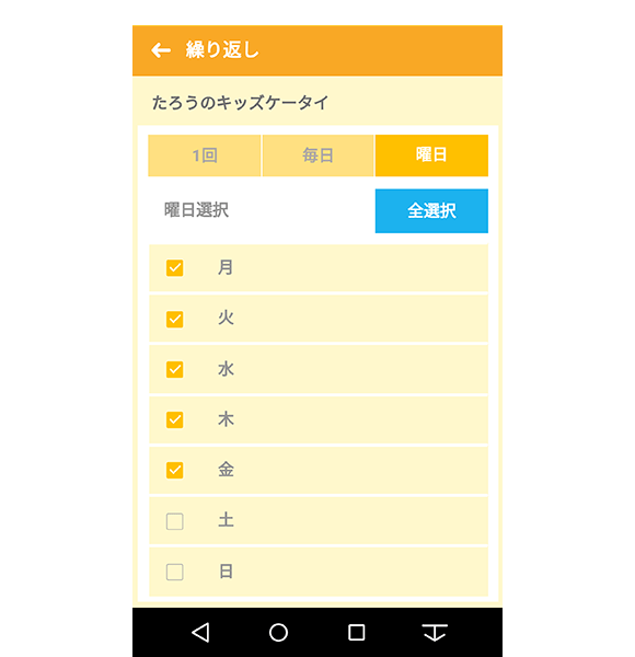 - 繰り返し(1回/毎日/曜日選択)を設定します。