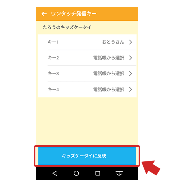 - 登録内容を確認し、「キッズケータイに反映」をタップします。