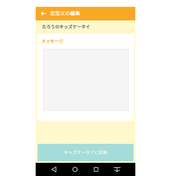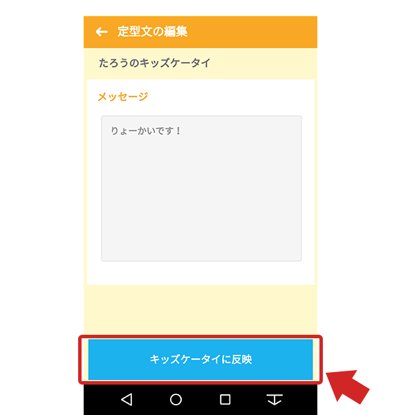 - 登録したい文面を入力し、内容を確認し、「キッズケータイに反映」をタップします。