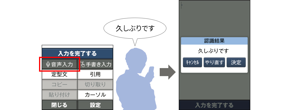メールなどの文章を音声で入力することができます。口頭でメール作成が行えるので便利です。