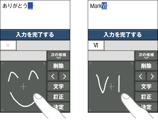 大画面を活用しての手書き入力に対応。漢字はもちろん、絵文字や英数字にも対応しています。文字種を切り替えることなく、スムーズに入力できて便利です。