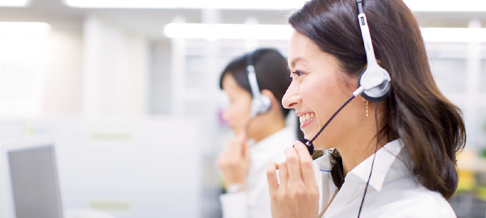専門のアドバイザーが操作方法などをやさしく教えてくれる、「らくらくホンセンター」。専用ボタンを押すだけで、ワンタッチでつながります。