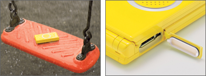 F-05Aは、水に濡れてもあんしんの防水性能(IPX5/IPX7)。うっかりケータイを水の中に浸けてしまってもあんしんです。