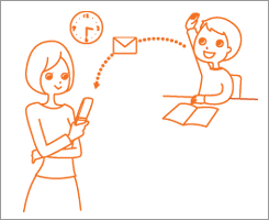 検索したい時刻を設定しておくことで、自動的に検索を行い、居場所をメール(メッセージR)でお知らせします。さらに、探したい相手がエリア外にいるのか中にいるのかを同時にメール(メッセージR)でお知らせします。