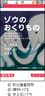 ゾウの親子を通して、親から子どもへの思いを描いた物語コンテンツを収録しました。原作は講談社より出版されている絵本「ぞうの せなか」(文 秋元康/絵 網中いづる)。F-05Aでは絵本にはない「ことばのバトン」モード・「お父さんから子どもへ伝えたい言葉」を搭載。お子さまにもわかりやすい構成になっています。