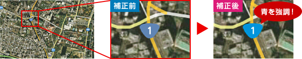 年齢に合わせた自動配色補正機能。色の彩度に対する感度は年齢によって異なり、加齢とともに青の色覚特性が変化します。ユーザーの年齢に合わせて青みを調節し、識別しやすい配色を実現します。