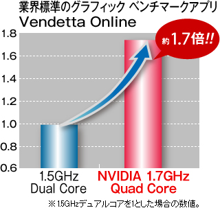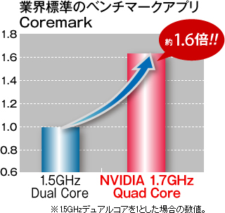 圧倒的なスピードで、常識を超えた快適操作を実現するクアッドコアCPU「Tegra 3」を搭載。ゲームや映画などの大容量コンテンツも、ストレスフリーで楽しめます。