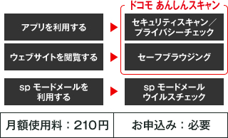 タブレットを利用し、ウェブサイトの閲覧、spモードメールの利用、アプリの利用を安全に行うためにおすすめのセキュリティサービスをまとめて申込みできます。