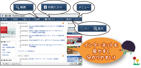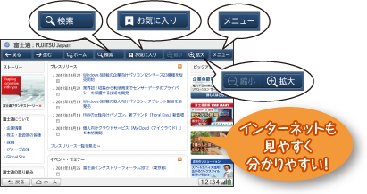 「検索」や画面の「拡大」「縮小」などを分かりやすいアイコンで表示。初めての方でもカンタンに使えます。