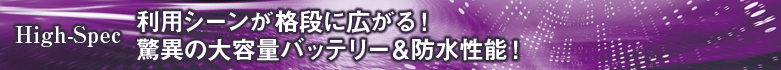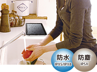 水まわりで使うときも安心して利用できます。しかも大容量バッテリーなので、バスルームやキッチンなどでネットや動画を長時間楽しむことも可能です。