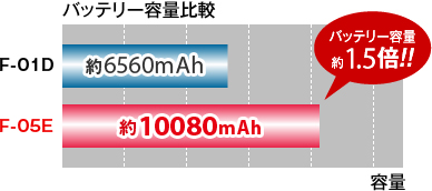 ARROWS Tab LTE F-01Dと比べて1.5倍以上の大容量バッテリーを採用。屋外に持ち出すときも、旅行に行くときも、ブラウジングやネット動画、地図閲覧など、バッテリーの心配なく思う存分楽しめます。