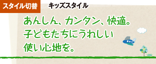 「スタイル切替」のキッズスタイルなら、大きな文字で使いやすく、デザインもかわいいので、子どもたちにぴったり。アプリやWebの利用を制限できるので、お子様にも安心です。