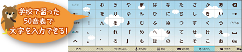 学校で習った「あいうえお」の50音表で入力する50音入力に対応。カンタンに文字入力ができる上、小さい子にはひらがなの勉強にも使えます。