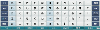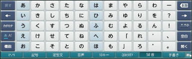 文字と文字の間に間隔があり、ボタン型で表示する「ATM式50音入力」で、入力しやすくなります。