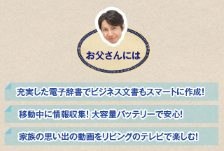 カンタンで分かりやすい使い心地をとことん追求した「かんたんスタイル」をご用意。大画面のタブレットを贅沢に使ったアプリの配置や表示などで、いつでもどこでも、やりたいことを手軽にすばやく実行できます。