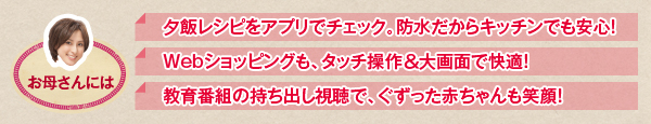 家族で楽しめるアプリや、ビジネスで役立つアプリ、動画、ゲーム、料理など、便利なアプリが買ったその日から使えます。