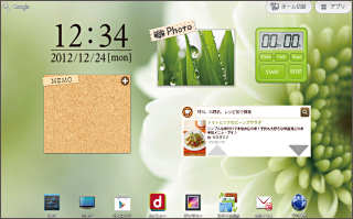 F-01Dで好評の「スタイル切替」がさらに進化。お父さん、お母さん、お子様それぞれが自分に合った、愛着の持てるホーム画面を利用できます。壁紙やアイコン、時計デザインはもちろん、ウィジェットやショートカットアイコンも、自分の思うままに。新しくなった「スタイル切替」で、日々の生活がもっと楽しくなります。