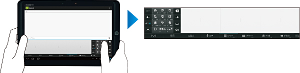 片手入力から手書き入力まで多彩な文字入力方式を搭載。キッズスタイルにすると学校で習う右はじめの50音入力を自動で表示。また、かんたんスタイルにすると使い慣れた左はじめの「ATM式50音入力」に自動で切り替えるなど、ARROWS Tab LTE F-01Dと比べてさらに使いやすく進化しました。