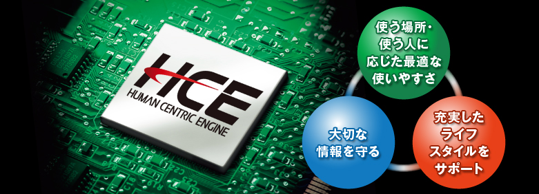 ヒューマンセントリックエンジンとは、富士通が長年培ってきたモバイルセンシング技術と世界一のスーパーコンピュータを生んだハード/ソフト技術により、使う人を中心にした豊かで快適な生活をサポートするシステムの総称です。その中心で機能しているのが、省電力と高機能を両立した独自開発の専用LSIです。