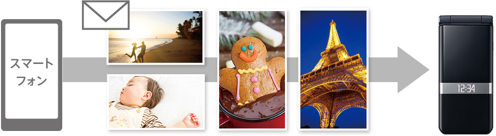 これまでのメールと同じ操作でカンタン便利に使えるドコモメールに対応。スマートフォンから大容量注1の画像を受け取ることができるようになりました。