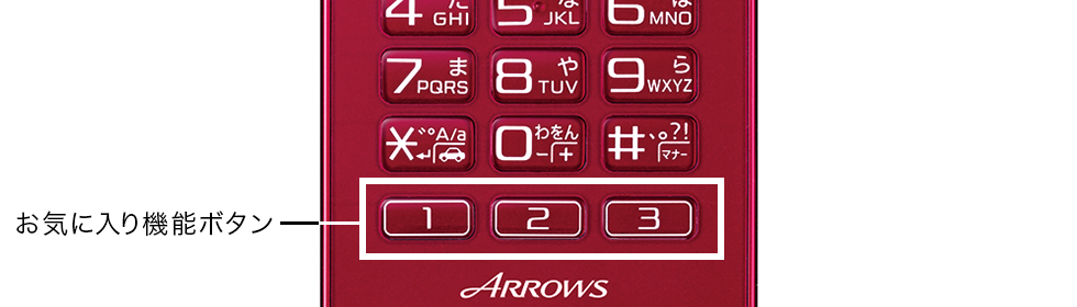 「1」短押し:LINE 長押し:ワンセグ、「2」短押し:ブックマーク 長押し:画面保存(スクリーンショット)、「3」短押し:最大輝度 ON・OFF 長押し:空き(好きな機能を設定可能)