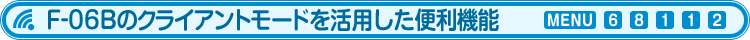 F-06Bを利用する環境やネットワークの電波状態などに応じて、FOMA/Wi-Fiのどちらの電波を利用するかを設定できる「通信モード設定」を搭載しています。
