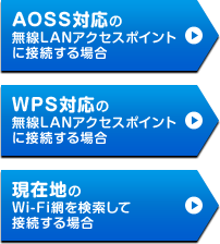 F-06Bではカンタンにアクセスポイントに接続できるAOSS接続やWPS接続、また現在地のWi-Fi網の検索ができます。